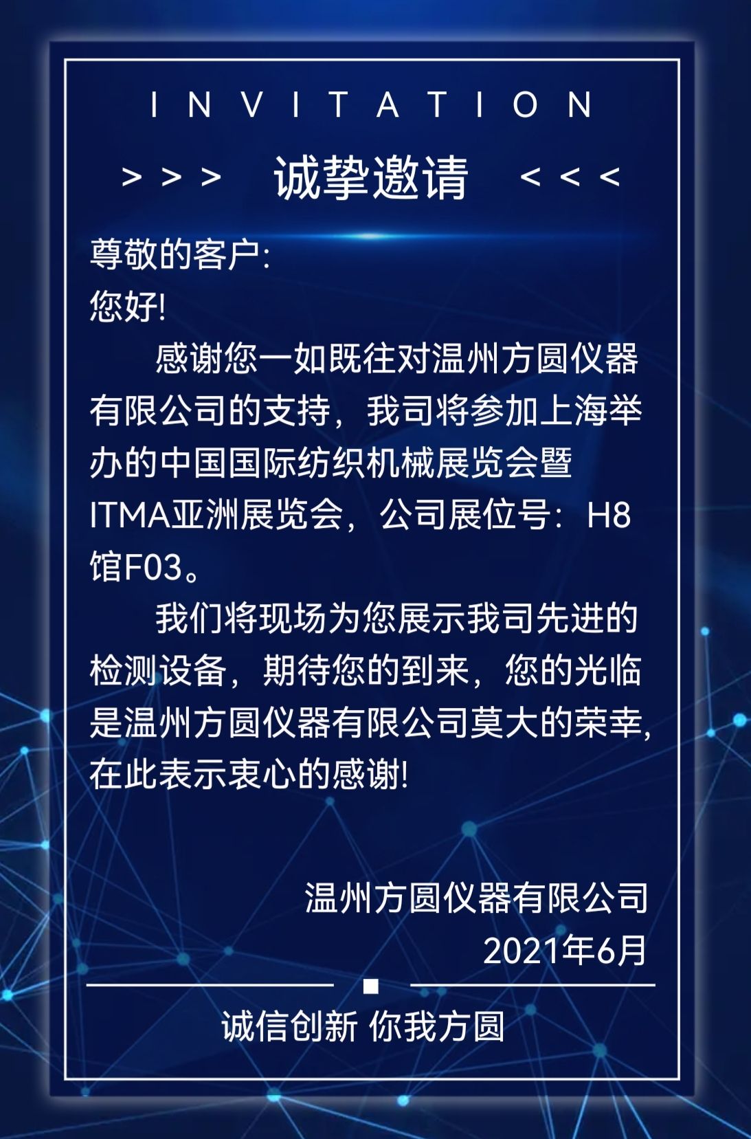 溫州方圓儀器有限公司邀請函